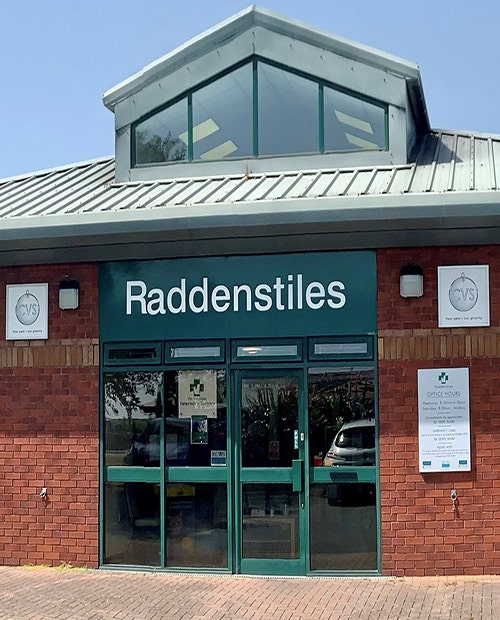 Raddenstiles Veterinary Surgery is a trading name of CVS (UK) Limited; a company registered in England and Wales. Company registration number: 03777473. Registered Office: CVS House, Owen Road, Diss, Norfolk IP22 4ER. VAT number: GB737145235